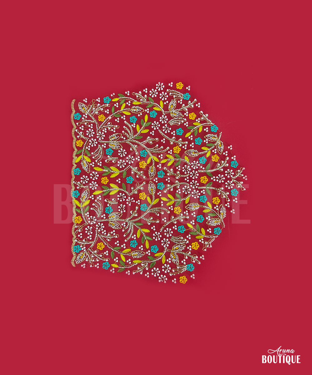 Bridal Red Maggam Work Blouse with Beads | Designer Wedding Blouse