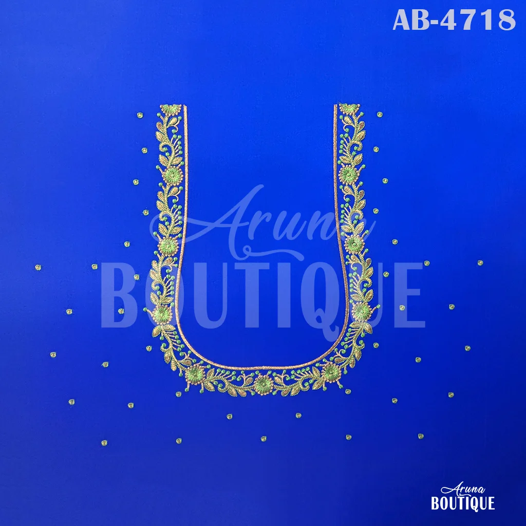 crafted on premium fabric base. This design features a beautifully embroidered U neck pattern